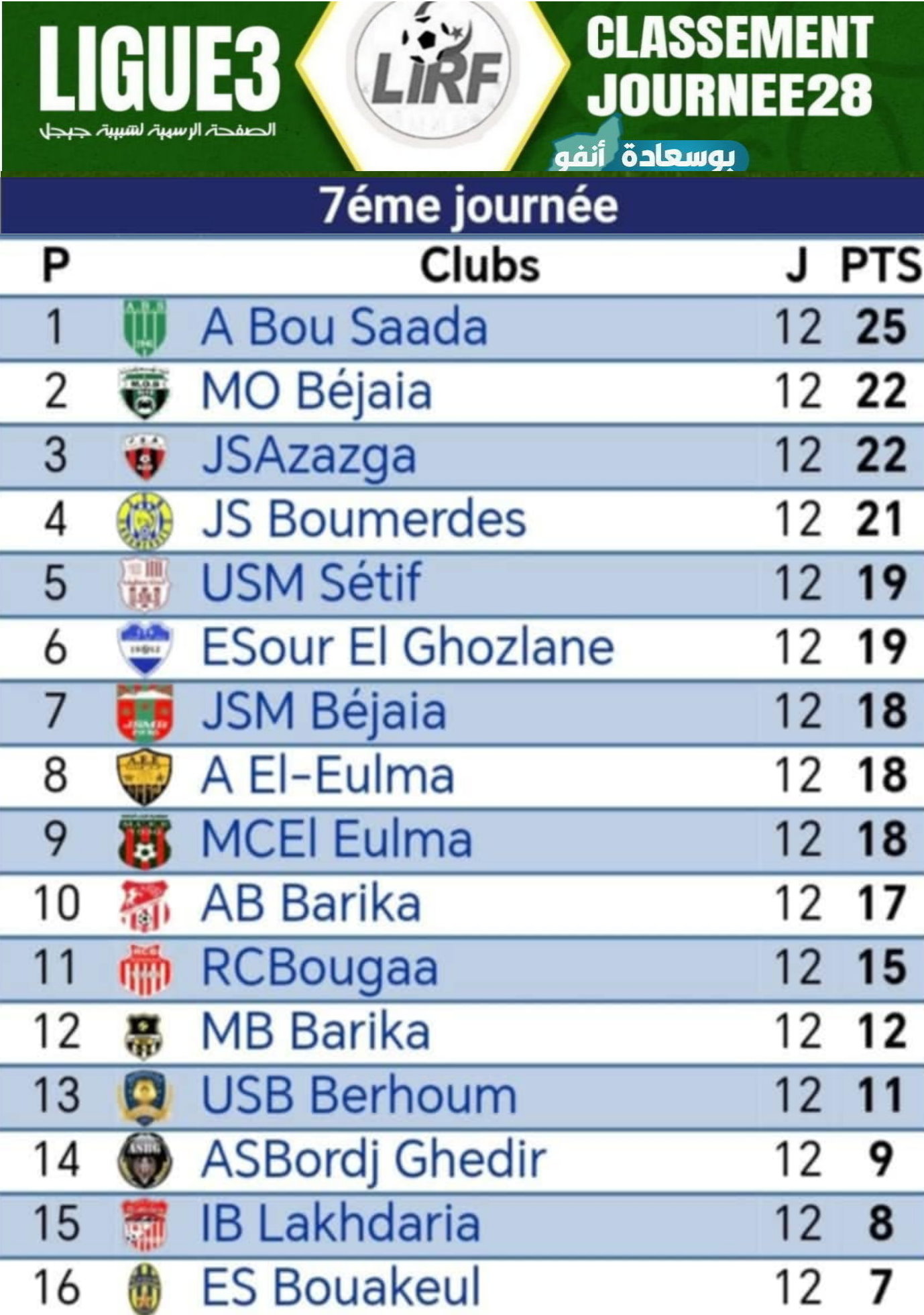 لحساب الجولة 12 من بطولة مابين الرابطات وسط شرق حقق امل بوسعادة فوز ثمين ببريكةامام المولودية المحلية في مقابلة وقف لاعبينا الند للند امام المنافس وحققوا هدفهم الوحيد عن طريق المدافع المتألق بيطام في الدقيقة !30 من الشوط الاول