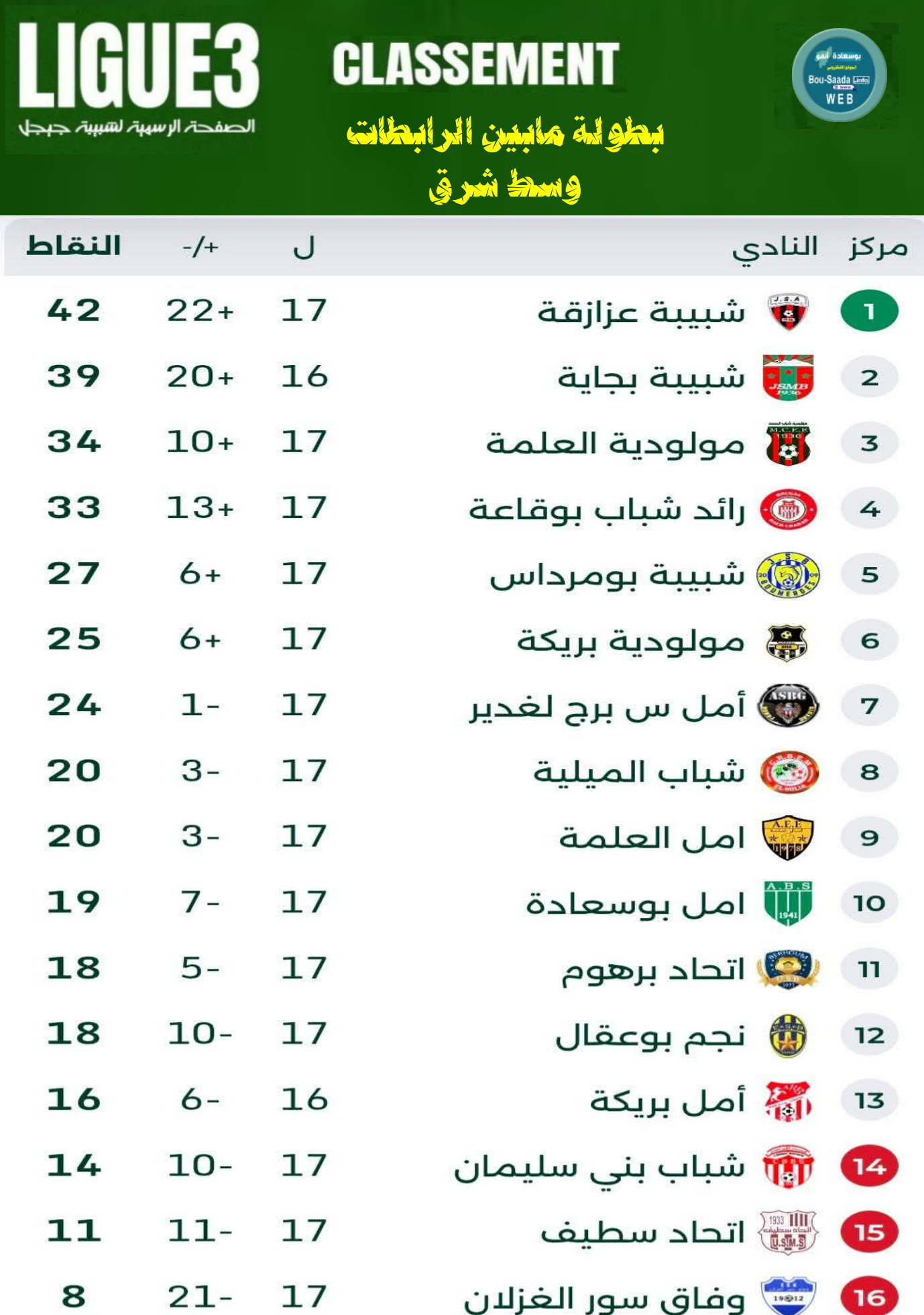 في إطار الجولة السابعة عشرة من بطولة ما بين الرابطات وسط شرق، انتهت مواجهة أمل بوسعادة وضيفه مولودية بريكة بالتعادل الإيجابي بهدفين في كل شبكة، في لقاء احتضنه ملعب مختار عبد اللطيف ببوسعادة، وجرى في أجواء هادئة نسبيًا بسبب غياب الجمهور، غير أن أحداثه داخل المستطيل الأخضر كانت حافلة بالإثارة والجدل التحكيمي.