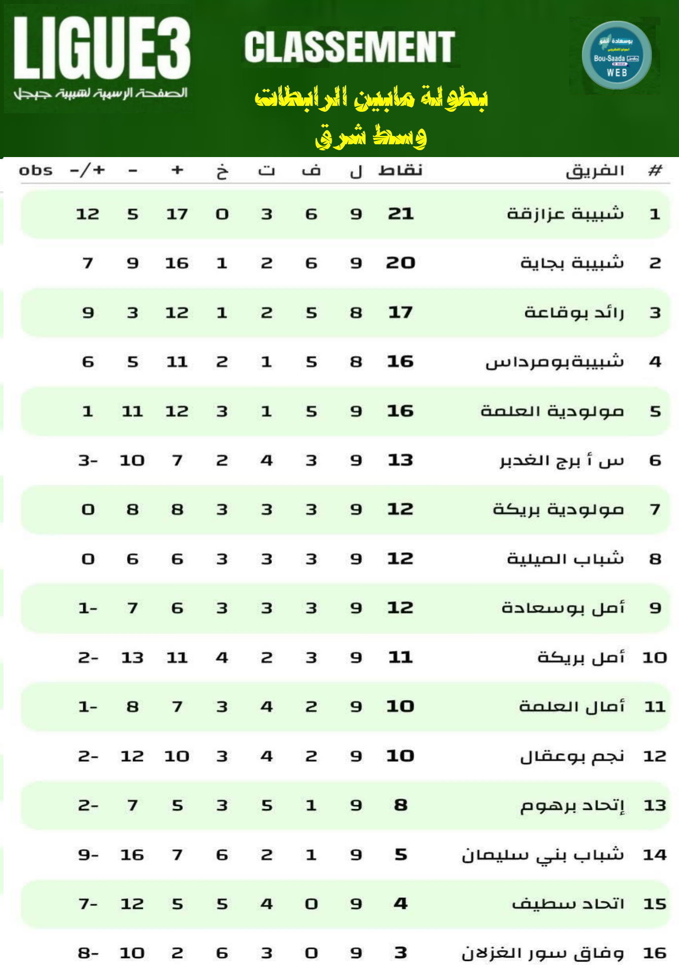 نرنيب الجولة 09 من بطولة مابين الرابطات وسط شرق
