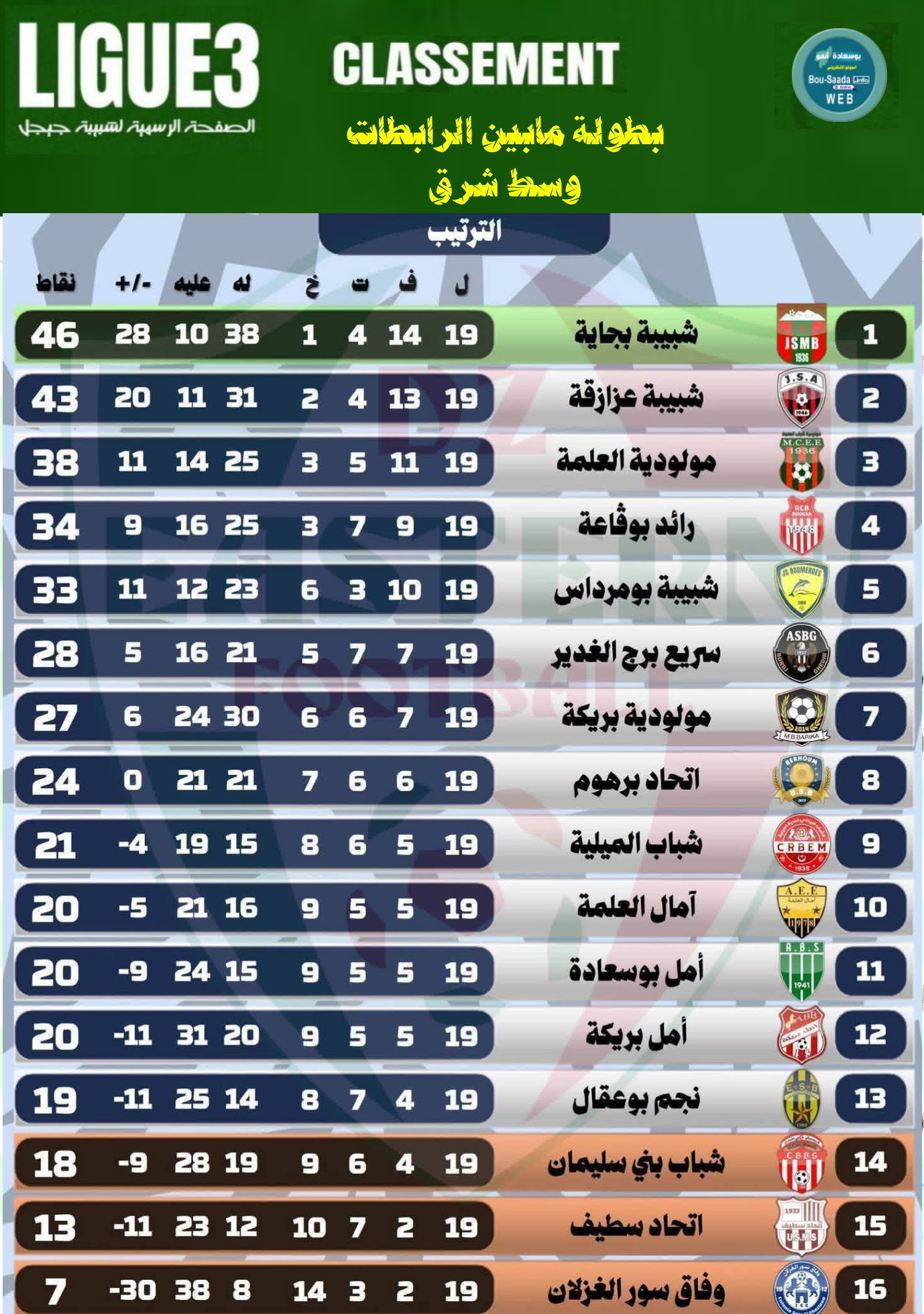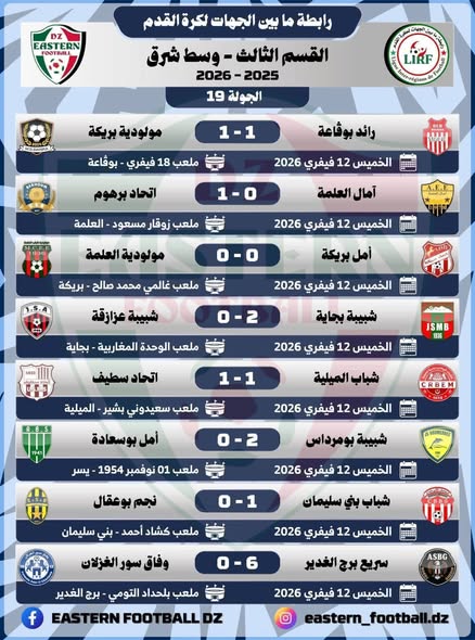بغد خسارة الامل في بومرداس كانت نتائج الجولة 19 من بطولة ما بين الرابطات (وسط شرق)