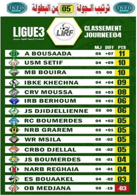 نتائج وترتيب الجولة الخامسة من بطولة مابين الرابطات وسط شرق نشرت بواسطة: امل بوسعادة في ترتيب بطولة الرابطات 4 ديسمبر، 2021 التعليقات على نتائج وترتيب الجولة الخامسة من بطولة مابين الرابطات وسط شرق مغلقة بعد فوز الامل في داربي الحضنة بثلاثية نظيفة كانت نتائج الجولة الخامسة من بطولة مابين الرابطات 2021-12-04 امل بوسعادة tweet